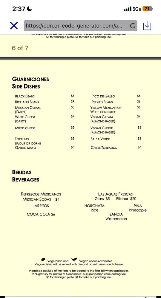 Tortilla chips, beans, lettuce, pico de gallo, cheese, jalapenos, cream, and choice of meat. Served with cilantro, onions, lime, and fresh salsa verde.