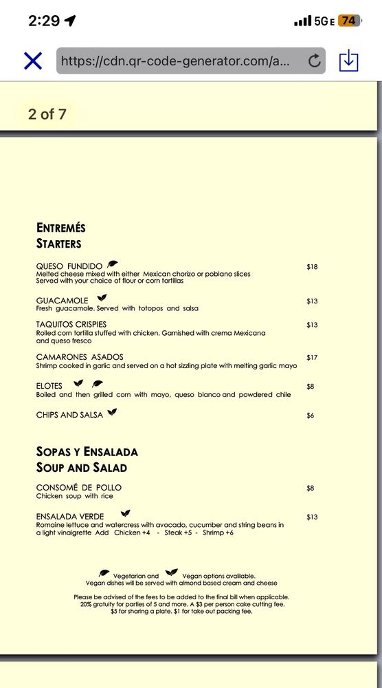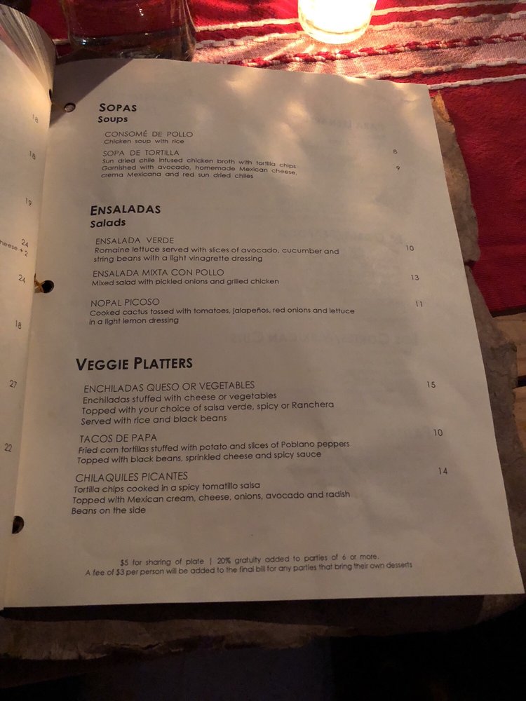 Chicken broth, tortilla chips, avocado, homemade Mexican cheese, crema Mexicana and red chiles.